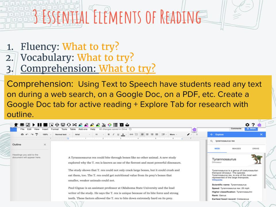 I will be heading to ISTE on Sunday for the annual international conference with participant numbers expected to be 30,000+ in San Antonio, TX! Get ready for a toasty climate, great food and San Antonio's southern charm. My presentation will be all about using Google Apps and Extensions in the Chrome browser and iOS accessibility to support literacy. My suggested reading and writing solutions are included in this blog post. See below with some description for each solution suggested.